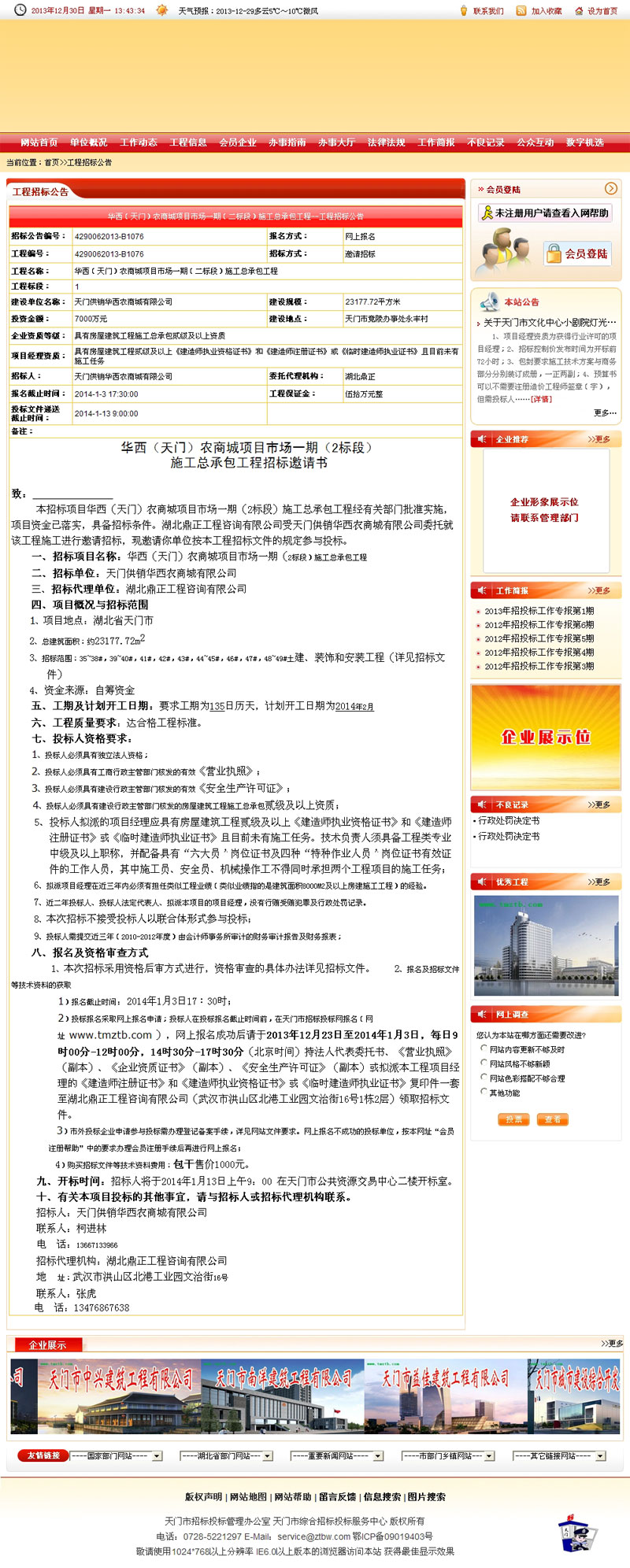華西(天門)農(nóng)商場(chǎng)項(xiàng)目市場(chǎng)一期(二標(biāo)段)施工總承包工程