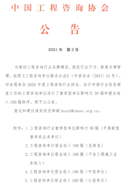 近日,中國工程咨詢協會中國建設工程造價管理協會分別發布了《工程咨詢單位營業收入100強(中型單位)》和《關于2021年第三批工程造價咨詢企業信用評價結果》,其中,鼎正工程咨詢股份有限公司榮獲AAA等級信用評價,并在上述百強排名中位列第68