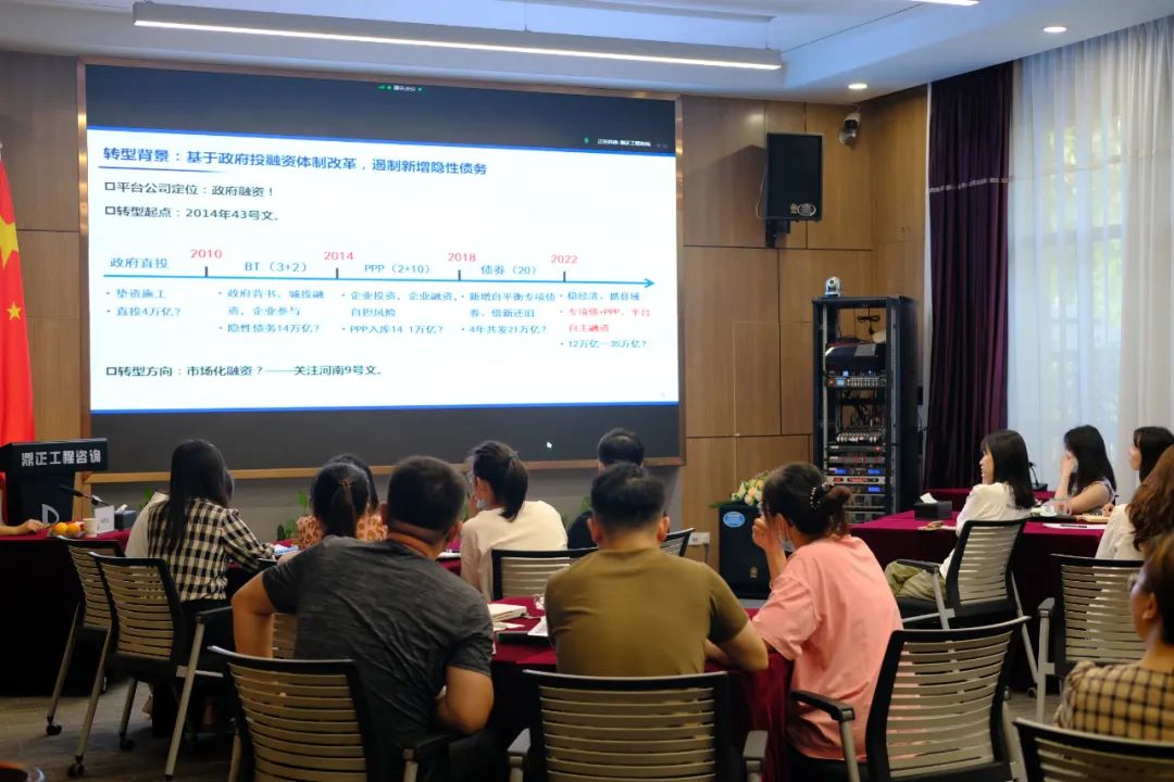 在兩個(gè)小時(shí)的分享中,楊總從政府投融資平臺公司的前世今生,系統(tǒng)介紹了政府投融資體制改革背景、政府投融平臺公司轉(zhuǎn)型發(fā)展思路、工程咨詢企業(yè)與政府投融平臺公司合作模式。