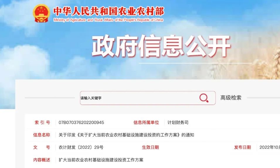 4.農業農村部《關于擴大當前農業農村基礎設施建設投資的工作方案》的通知