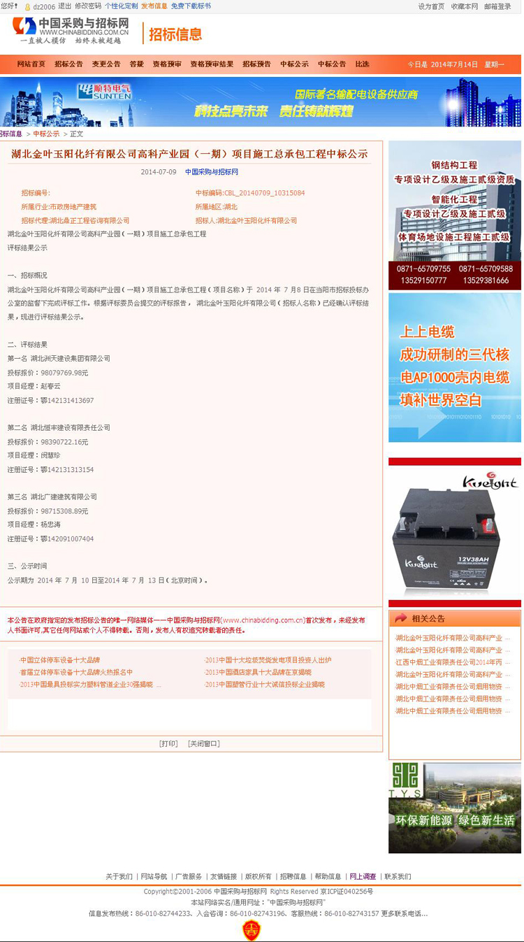 湖北金葉玉陽化纖有限公司高科產業園(一期)項目施工總承包工程