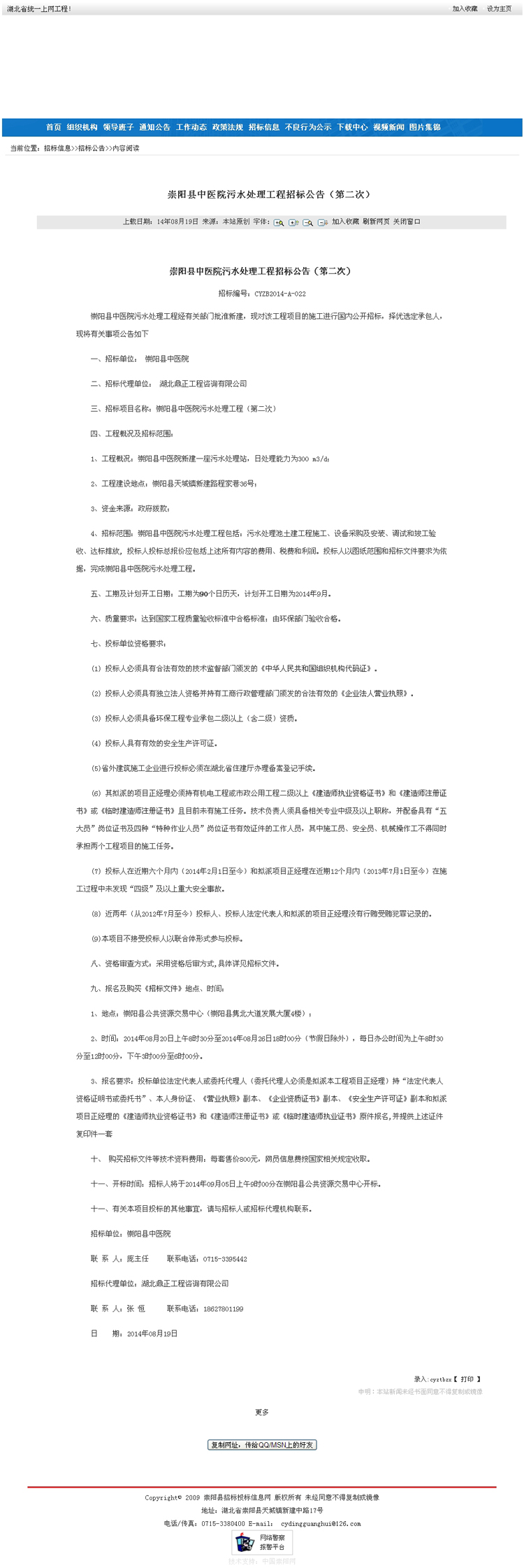 崇陽縣中醫院污水處理工程(第二次)