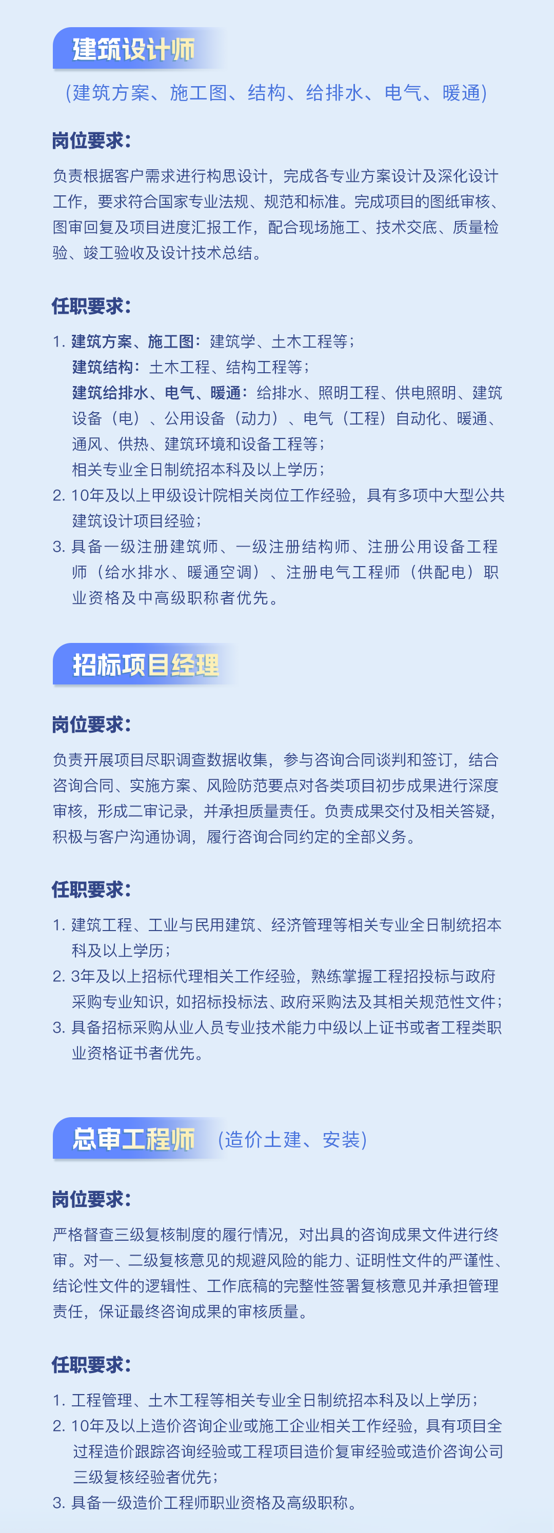 公司下設工程咨詢事業部、招標代理事業部、工程造價咨詢事業部、規劃設計事業部等機構...