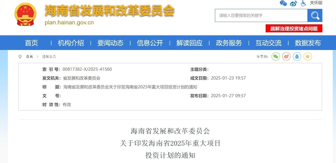 海南省發(fā)展改革委公布《海南省2025年重大項(xiàng)目投資計(jì)劃》。2025年安排省重大正式項(xiàng)目554個(gè),總投資8540億元,年度計(jì)劃投資1647億元。其中,竣工項(xiàng)目121個(gè)、續(xù)建項(xiàng)目274個(gè)、新開工項(xiàng)目159個(gè)。此外,安排省級(jí)145個(gè)預(yù)備項(xiàng)目,總投資2485億元。