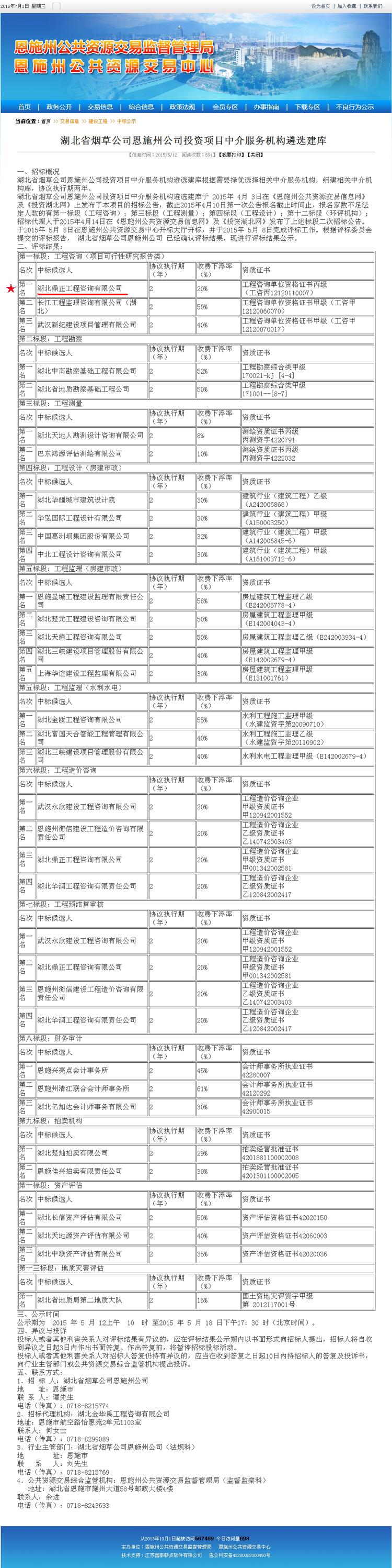 【經(jīng)營(yíng)成果】我司入選湖北省煙草公司恩施州公司投資項(xiàng)目工程咨詢(xún)中介服務(wù)機(jī)構(gòu)庫(kù)