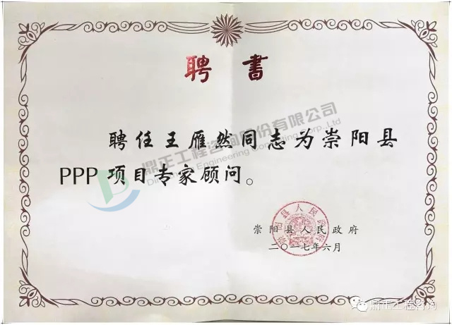 會(huì)中,崇陽(yáng)縣人民政府為王雁然先生頒發(fā)崇陽(yáng)縣PPP項(xiàng)目專(zhuān)家顧問(wèn)聘書(shū),負(fù)責(zé)指導(dǎo)崇陽(yáng)縣PPP工作。